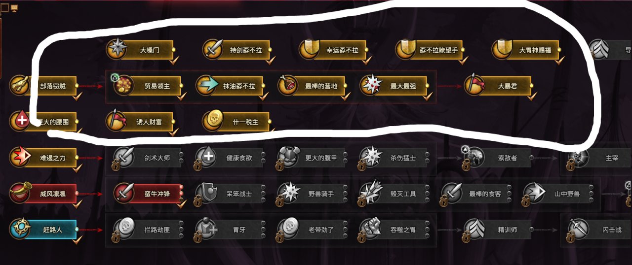 上面的「派系线」「个人线」拉满,可以提供整个派系的巨额加成;偶尔再点「军事线」,以怪步加成为主。