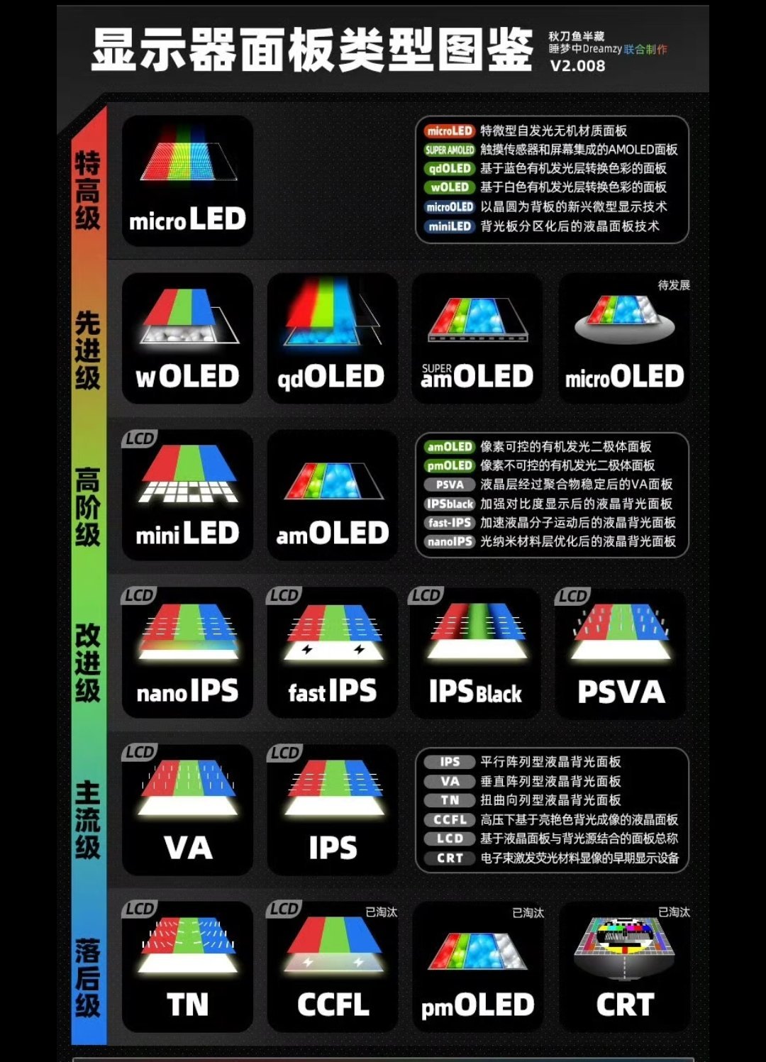 当然也有一些改变,像Fast-IPS、HVA等属于IPS和VA面板的改良版本,核心技术原理与原版一致,并无本质差异,主要通过优化提升了响应速度、对比度等特定性能。