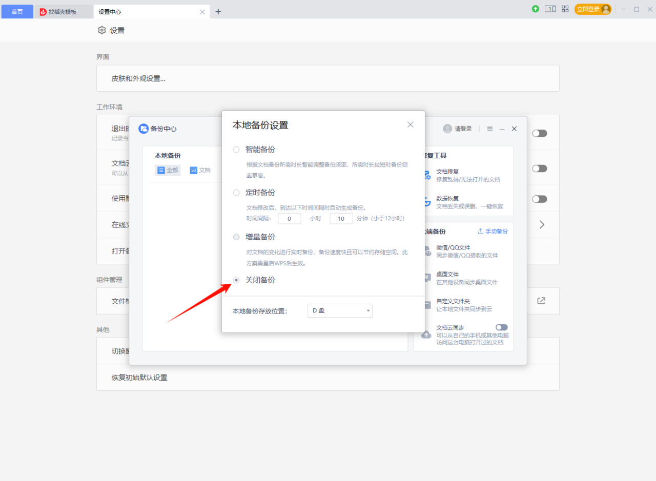 WPS默認會開啓自動更新、雲同步、廣告推送等後臺服務,這些服務會持續消耗CPU和內存資源。WPS的“模板推薦”“在線素材”等功能頻繁聯網加載,也可能影響系統性能,導致遊戲幀率下降,下面將這些不需要的功能都將它關閉: