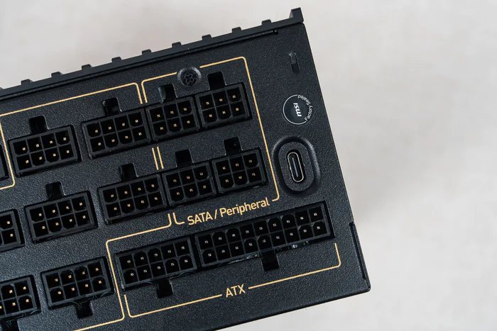 右侧有个防拆标签,还有一个USB TYPE-C口用于 MSI CENTER的软件控制和电源的数字控制模块的显示