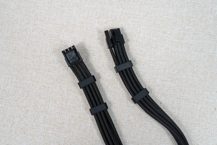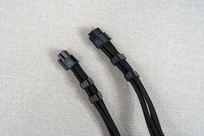 两条600W的12V-2x6显卡线缆,为三层柔性编制材料套筒编制线材