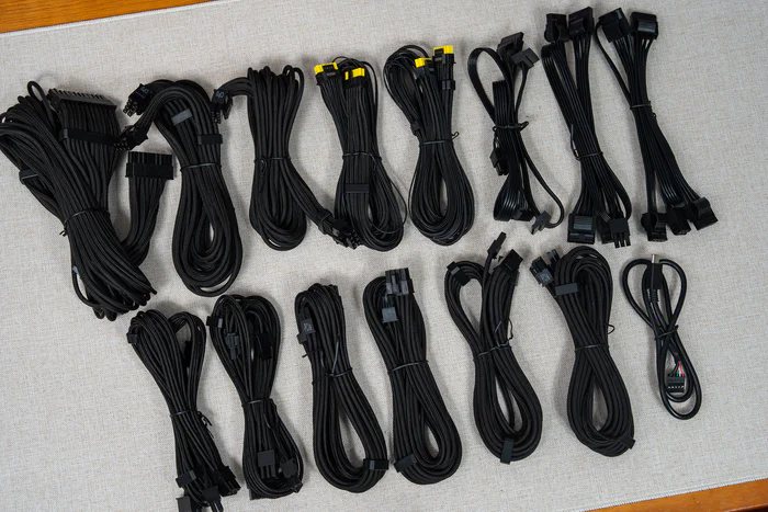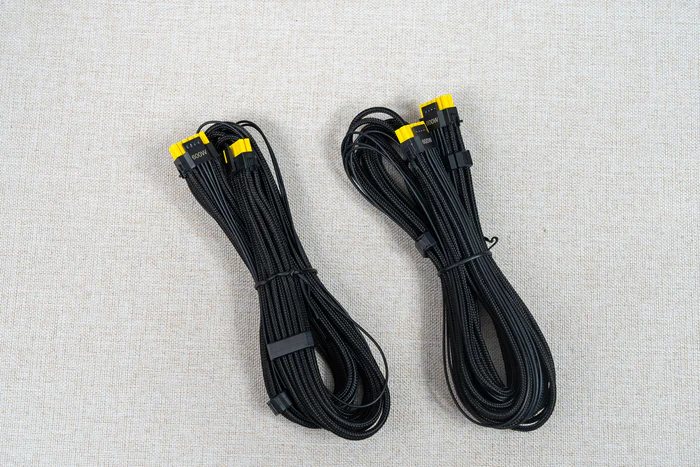 10、充足的模组线缆,预置理线梳的三层柔性编制材料套筒编制线材,异色设计的16-pin PCIe供电接口