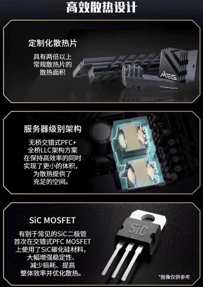 3、服务器级英飞凌碳化硅SiC(PFC)MOSFET,服务器级别的无桥交错式PFC+全桥LLC架构方案,在保持高效率的同时实现了更小的体积,配合定制化散热片实现两倍以上的散热面积,首次在交错式PFC MOSFET上使用了SiC碳化硅材料,大幅增强稳定性、减少损耗、提高整体效率并优化散热