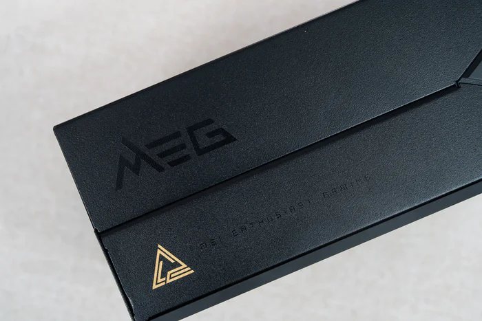 MEG的黑色字体标注,和MEG的金色logo,右侧还有MEG的全文标识“MSI ENTHUSIAST GAMING”