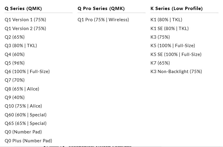 Q系列的成功显然是让keychron尝到了甜头,随后keychron开始迅速扩展不同配列的产品线,从Q0到Q10,极其小众的40、Pad、Alice也囊括其中。