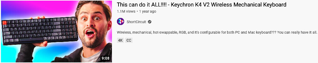 千万级订阅的博主的日常工作使用键盘,便是这把看似平平无奇的K2键盘,事实上K2的价格确实也非常平平无奇,甚至在当时颇有一番性价比的味道。也不得不感叹keychron在营销上的发力确实是占据了天时地利人和,真的是「一举成名天下知」。