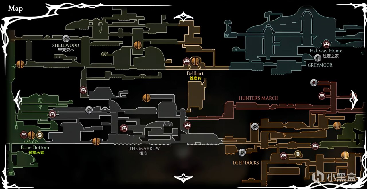 下面是地圖,這個應該不全,估計一下地圖應該比空洞騎士稍大一點。