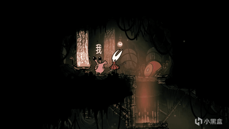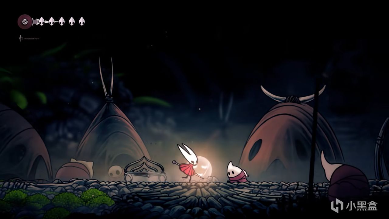 過渡之後到下一個場景,中間發光的小蟲子不知道有什麼用,看預告路過也沒有交互提示。這個區域的蟲子應該是友方,看着像空洞騎士淚城區域的敵人,但是住的地方比較原始,不知道劇情上有沒有關係。