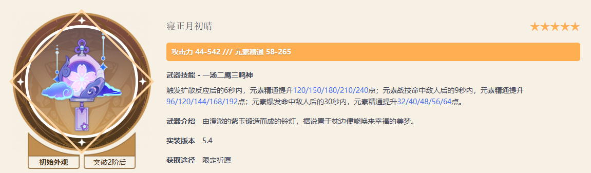 寝正月初晴:大幅提升元素精通,适合需要高频触发元素反应的局面。