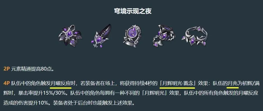 4件套:队伍触发月曜反应时提升暴击率和伤害