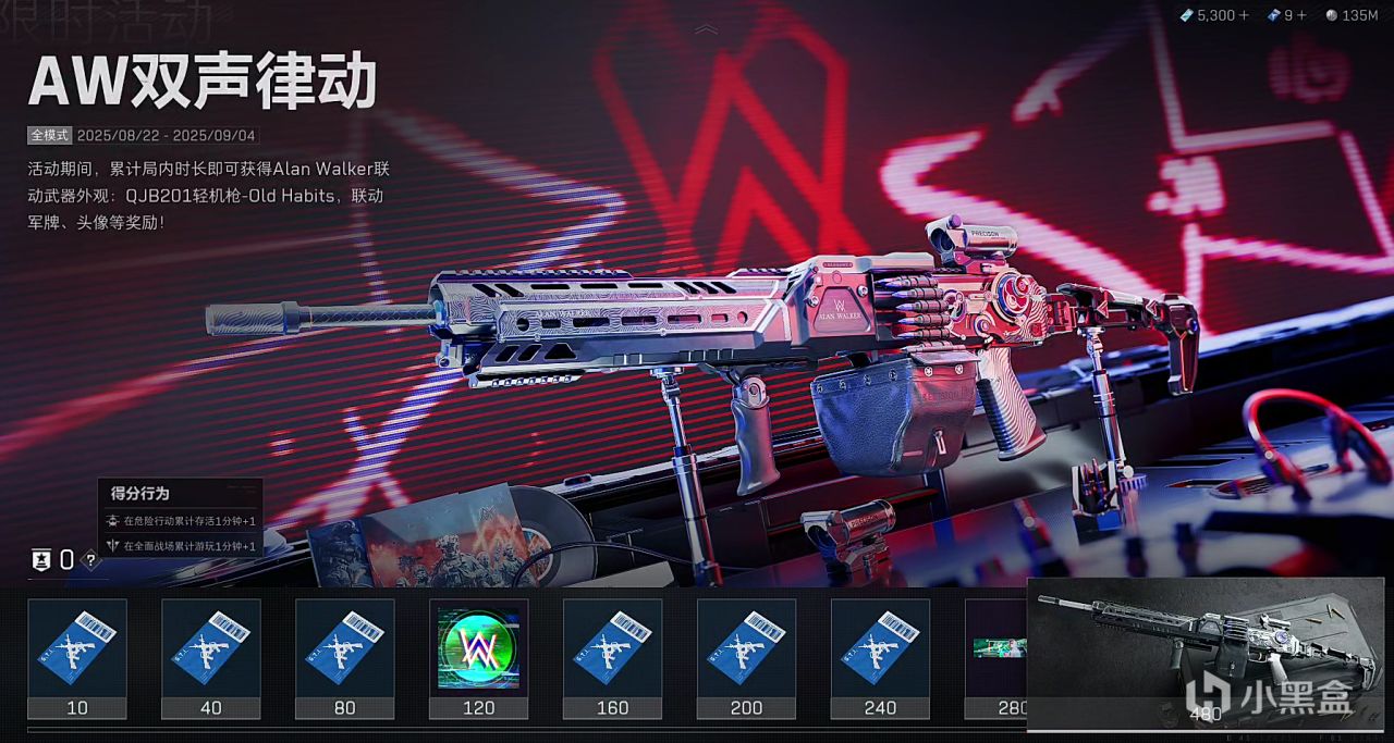 該活動是遊玩烽火行動跟大戰場累計局內時長,達到一定局內時長可領取 Alan Walker 聯動武器外觀等獎勵,獎勵內容如下: