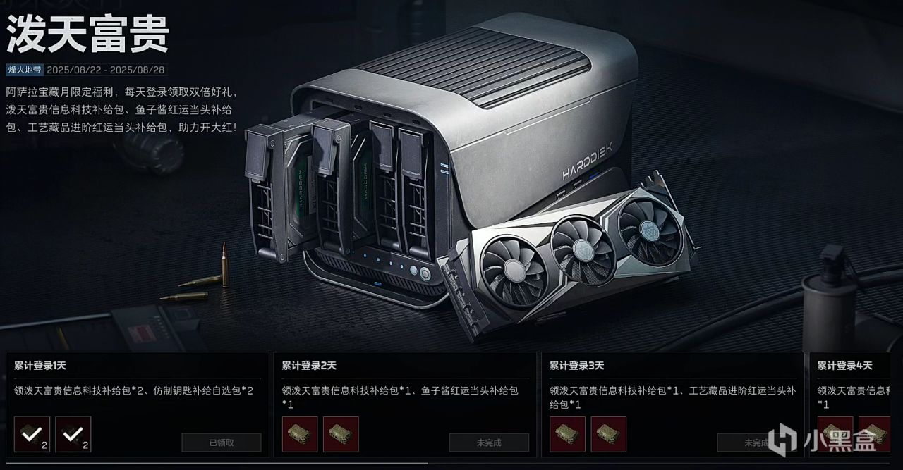 該活動是累計等了即可領取獎勵,共需簽到 7 天哦!每天簽到都能獲得一份補給包,至於能開出什麼,全靠自身的運氣啦!獎勵內容如下: