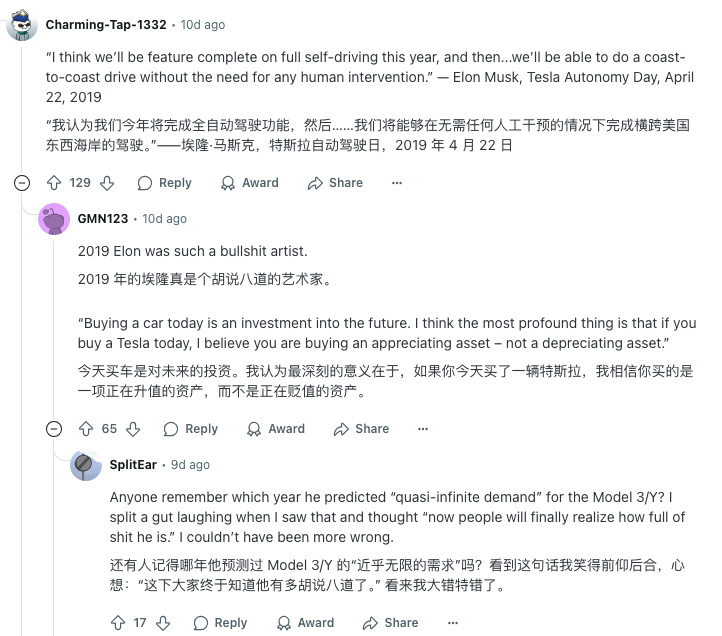 还有2018年,老马还说“现在的自动驾驶方式,能让自动驾驶系统在自运行时,发生事故的可能性更小,可以将发生事故的概率降低10倍。”