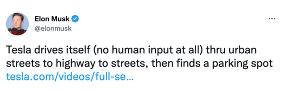 比如说 Autopilot 拥有“超人”的传感器,自动驾驶是一个“已解决”的问题,以及特斯拉的自动驾驶技术能够识别道路上的任何物体,包括“外星飞船”。