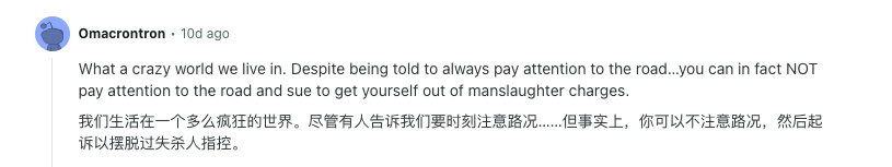 对判决结果,网友们也是东一句、西一嘴,群嘲特斯拉的大有人在,说司机推卸责任的也不少。
