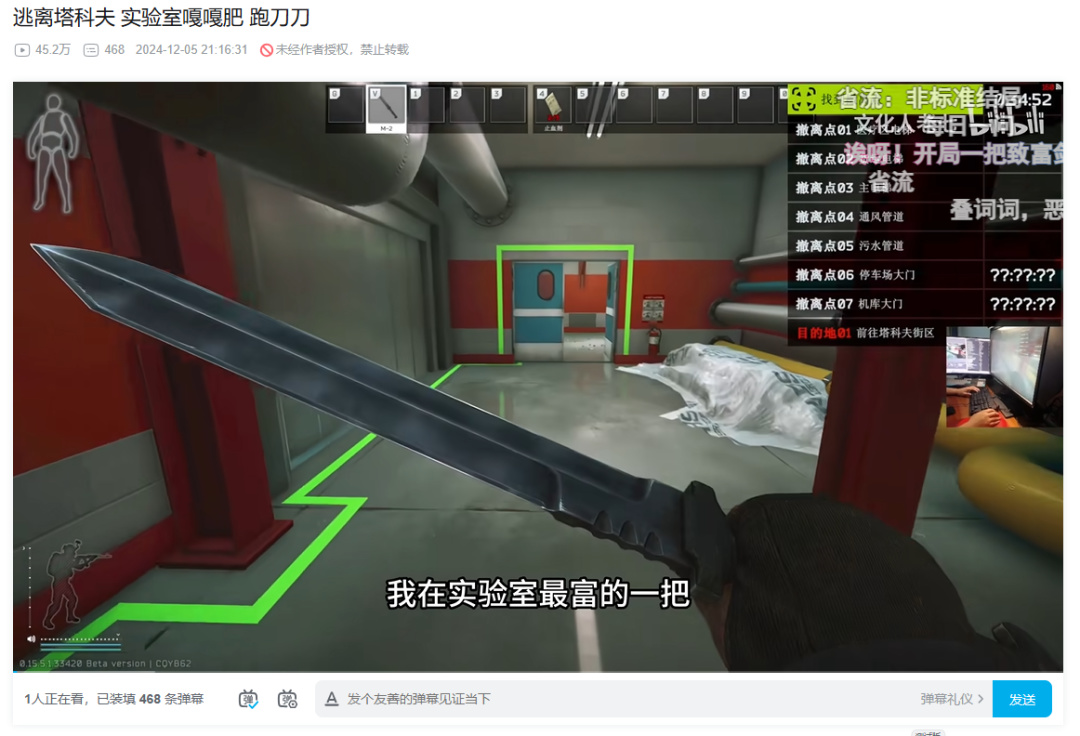 只是最初,跑刀仔就是跑刀仔,并没有一个明确统一又传神的赛博形象,而且跑刀这种前期投入几乎为0,吃到就是赚到的玩法,也完美兼容那些想秀操作玩出节目效果的大佬。再加上塔科夫极高的入门门槛,导致很长一段时间,跑刀并没有走出塔科夫的小圈子。