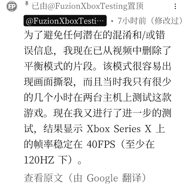 平衡模式(Balanced)在 XSX 存在撕裂 / 帧监测不准的报告:Fuzion 在视频中提到已移除该模式的某些镜头并标注了不准之处,意味着该模式数据仍需官方补丁确认。