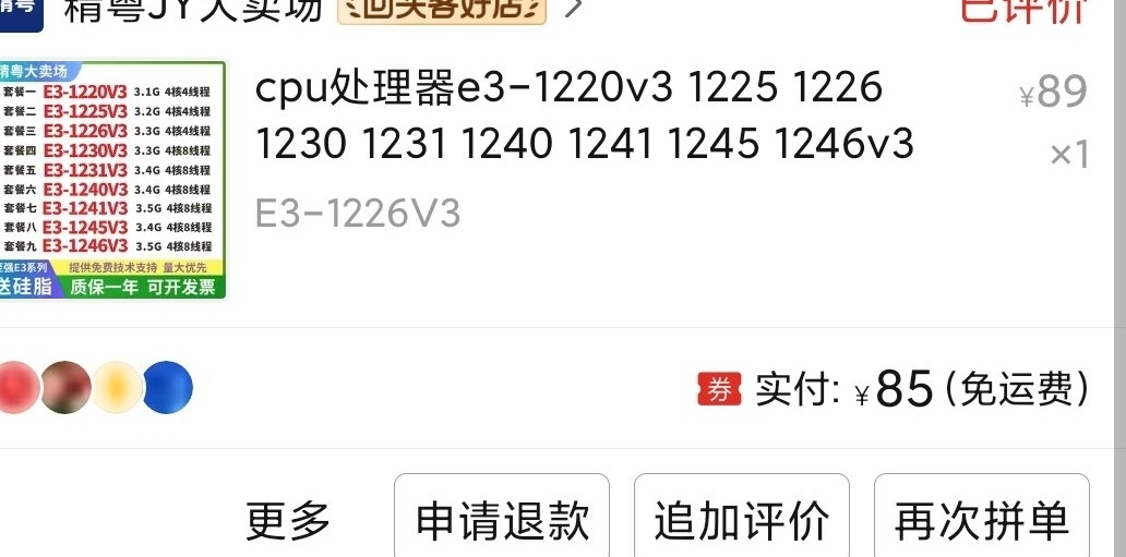 终于是升级到四核心八线程的E3了