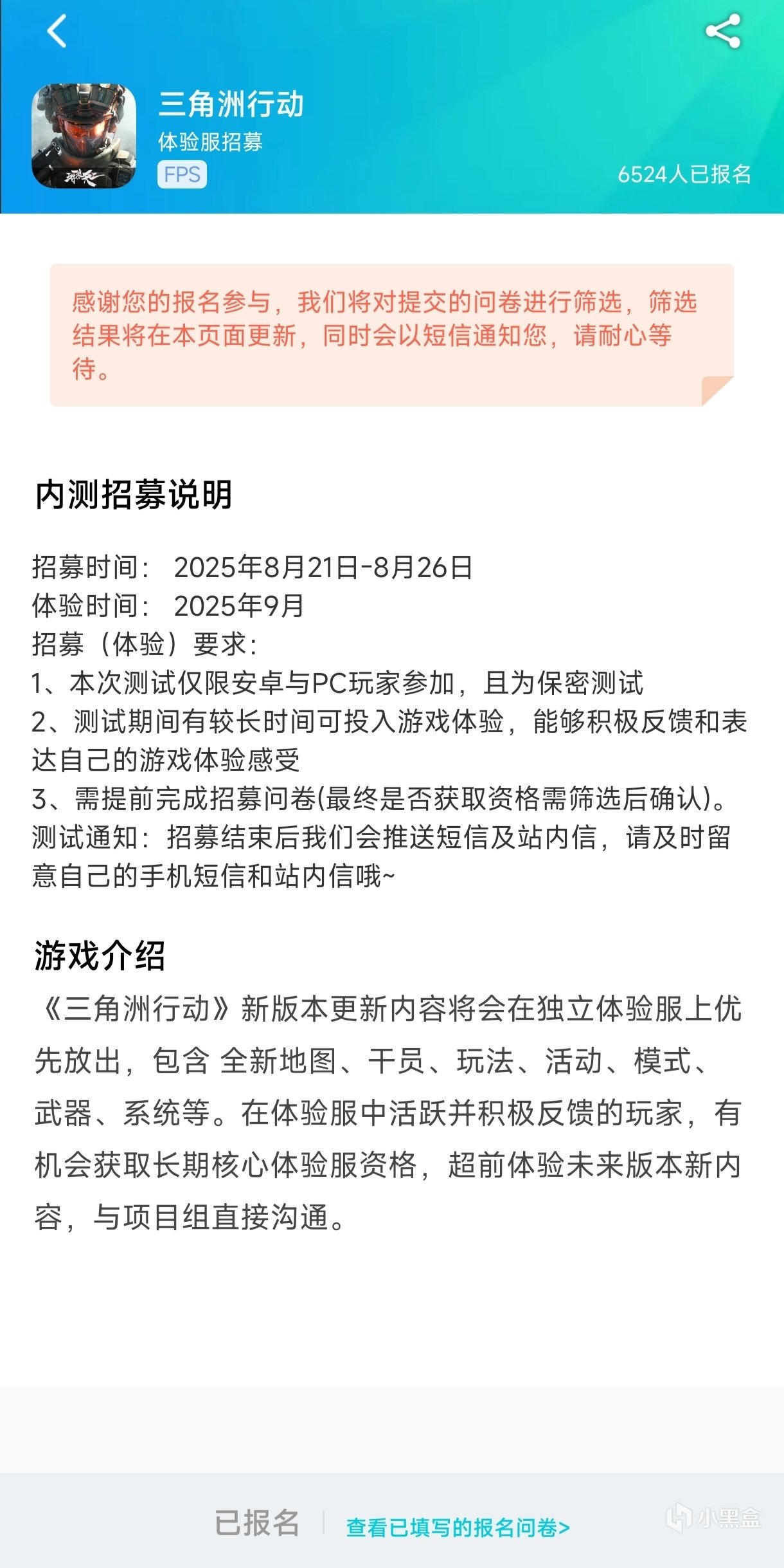 三角洲行動體驗服也是今天開啓了,這招募時間寫的21號,但是我昨天還看了一眼騰訊先鋒明明沒開,我的理解裏寫21號應該包括21號那一天,除非他寫個21號24點。