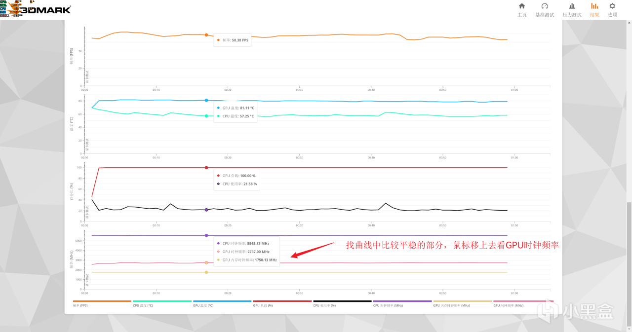建议使用 3dmark 跑一遍 SpeedWay 或 SteelNomad 或 TimeSpy 测试,然后查看结果中的GPU/CPU频率曲线,我这里用 SpeedWay 做例子