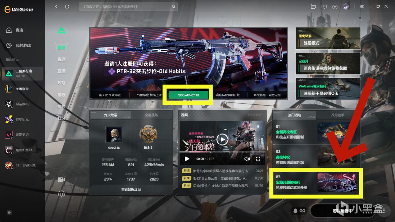 在那篇文章裏領取方式爲簽到7天即可領取並且在wegame的頁面正中心