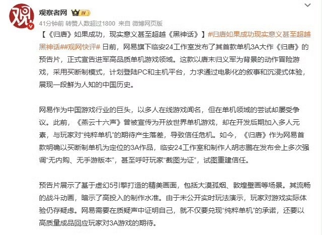 宣發讓人極度反感,b站全是人機彈幕,遊戲未出口號先行,不限於“歸唐!歸唐!”“將大唐帶回來”“我也要封狼居胥!”