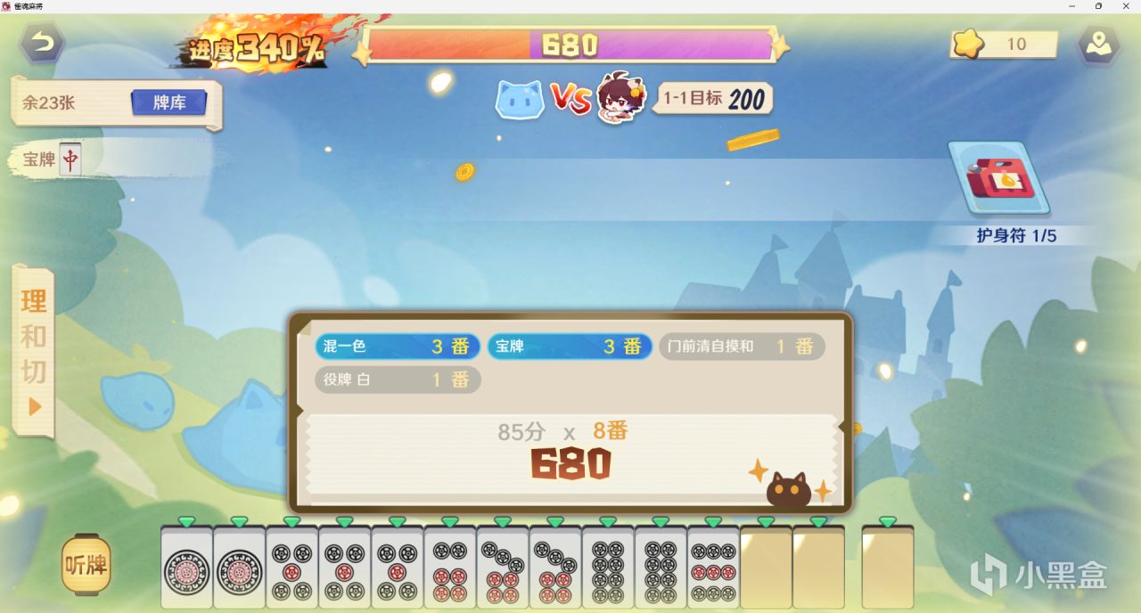 局內的玩法:單人湊牌型爽胡即可,根據現有的“護身符”效果去胡即可達成更高的分數!