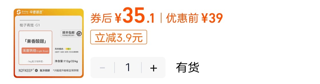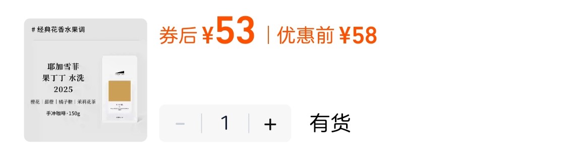 很标准很标准的埃塞,花香果香该有都有,冲煮也方便,细研磨一刀流。如果有什么活动卷抵扣,这价格也能买个日晒的果丁丁,当然水洗日晒属于个人喜好,价格高地不是评价好坏的硬指标。