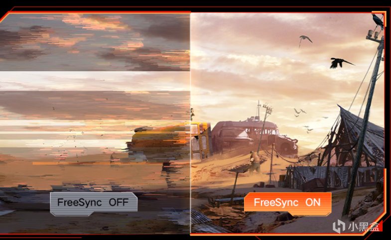 MPRT消除动态模糊技术搭配 FreeSync 同步技术,可其内置变频技术,能精准同步显示器刷新率与显卡帧率,有效解决游戏,视频画面卡顿、撕裂等问题,极大缩短输入延迟,呈现高保真的CG游戏画质。(兼容G-Sync)