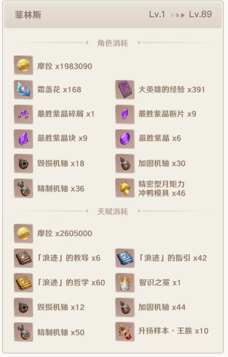 想要第一时间培养菲林斯的旅行者可以提前准备以下材料: