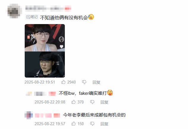 在同一條熱議下,有網友把話題拉到另一對“長相相似”的名人組合:T1 傳奇選手 Faker 與國內抖音健身主播/網紅 莎赫兒。近來莎赫兒發佈的幾張近照被部分網友戲稱“像女版 Faker”,於是大家在評論裏呼籲“要是兩人能同框該多好”。