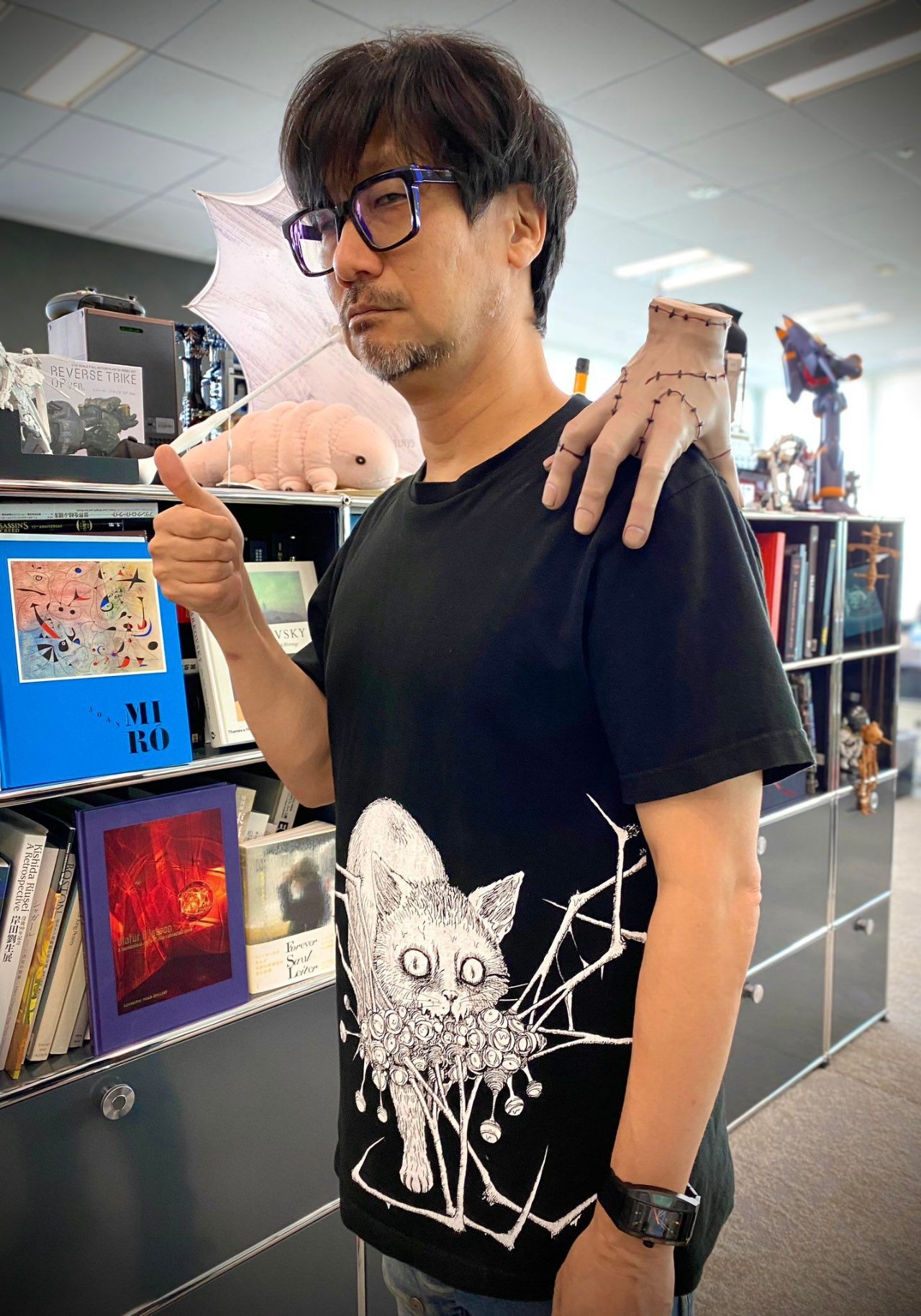 小岛秀夫在视频里 展示了《星期三》(Wednesday)相关的周边商品,同时镜头里出现的小岛身着那件“玛玛”图案的T恤作为亮点被放大报道。相关报道把场景描述为“他太懂了!小岛秀夫身着玛玛演员痛衫开箱周边”。