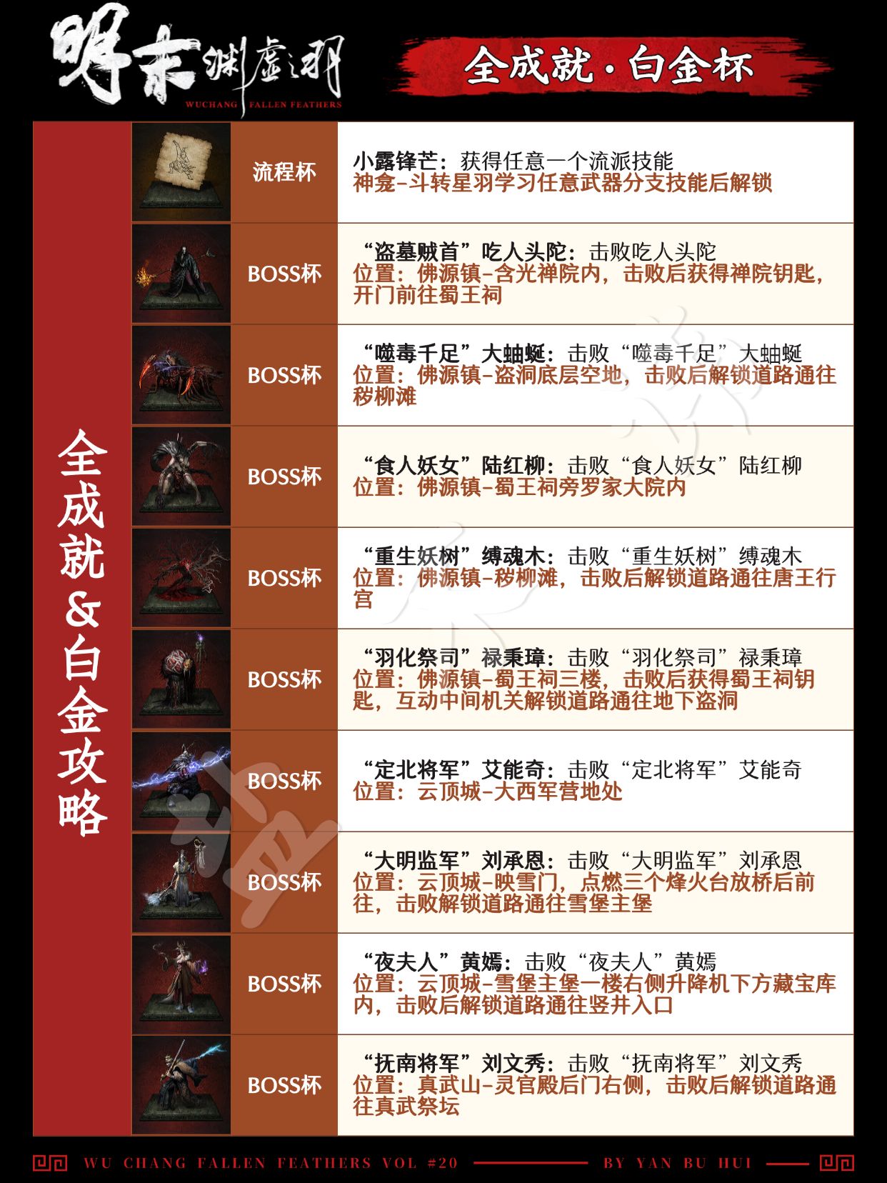 “白家怪婴”白克虏:需在真武山击败张献忠后(略过说书人,不与其对话)穿过洞穴到江望渡口乘船前往白家旧宅并击败白克虏后解锁成就&奖杯