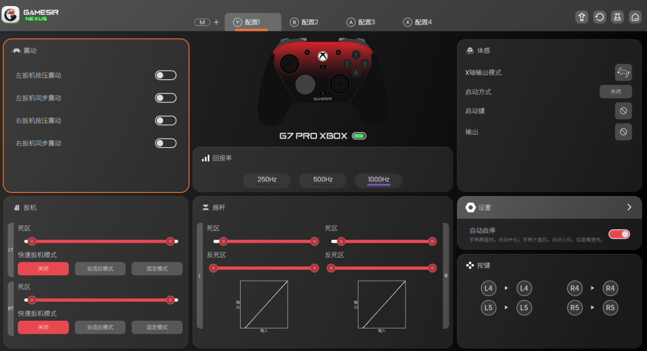内置体感陀螺仪,PC端可通过【GamerSir Nexus精英软件】进行强制体感映射