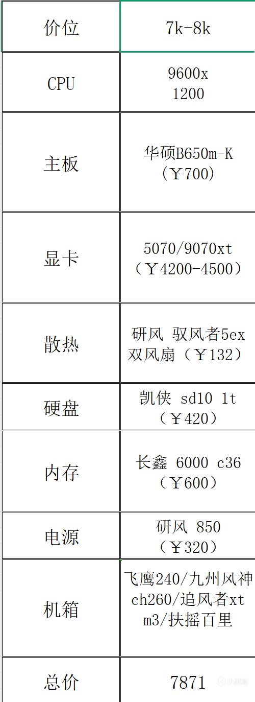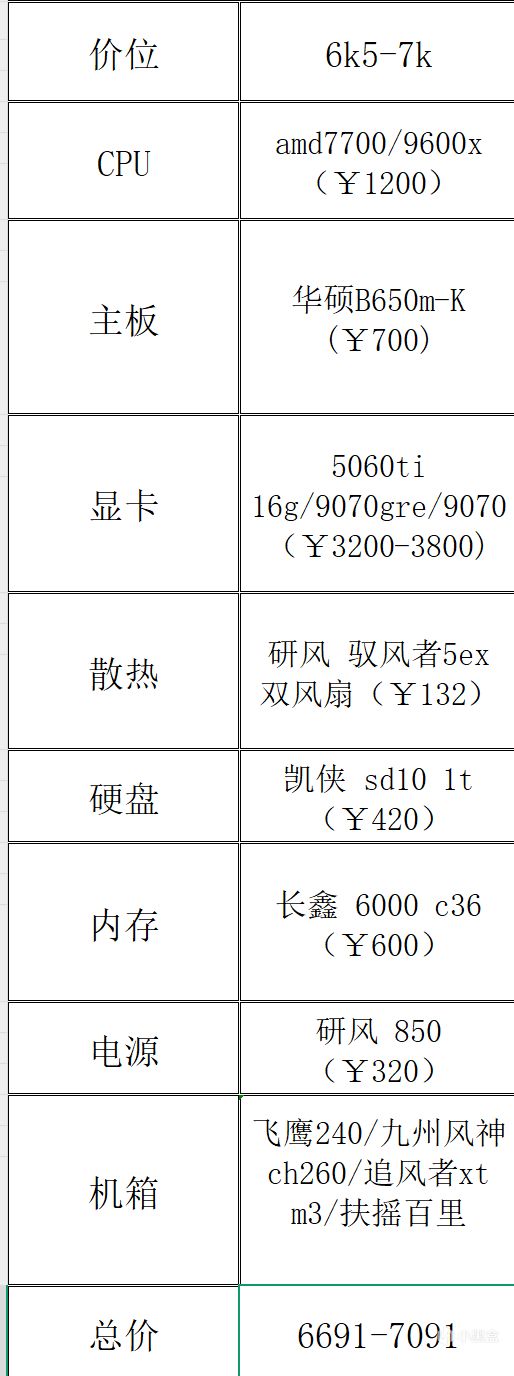 話不多說,我們直接進入正題,關於選擇這些配件的理由,我上期也已經寫過了,這期就不贅述了,直接上配置清單,沒看過上期的hy們可以去看一看https://www.xiaoheihe.cn/app/bbs/link/162072170