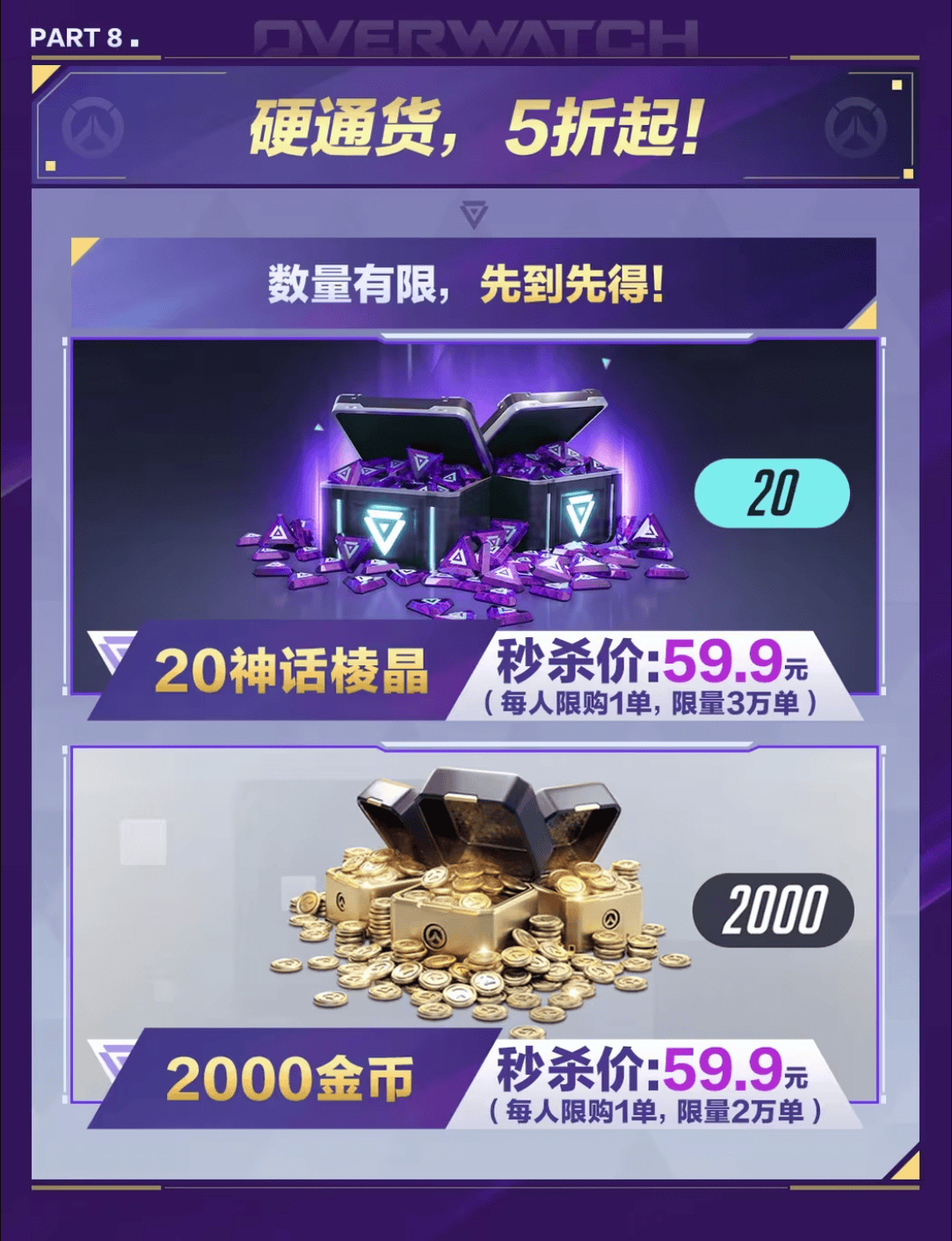 20神话棱晶-59.9(仅限3w单)、2000金币-59.9(仅限2w单)——推荐