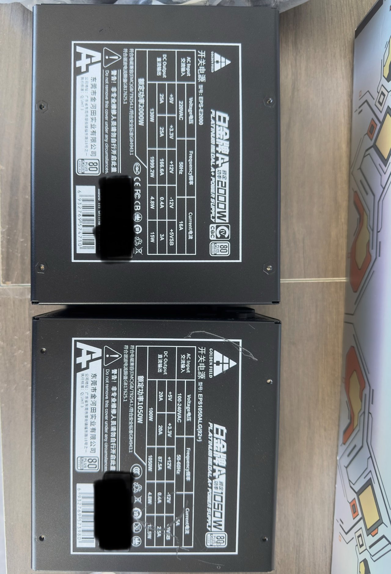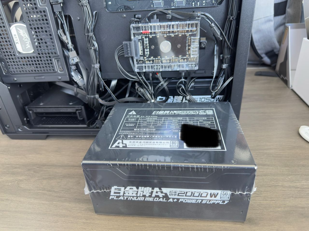 但是抖音一直推荐我买海韵的1200瓦,2000左右的预算,最后想了想试一下金河田白金2000瓦,毕竟1050瓦给我的印象还不错