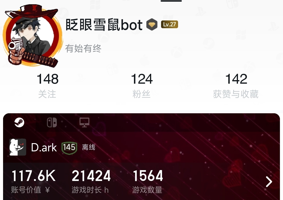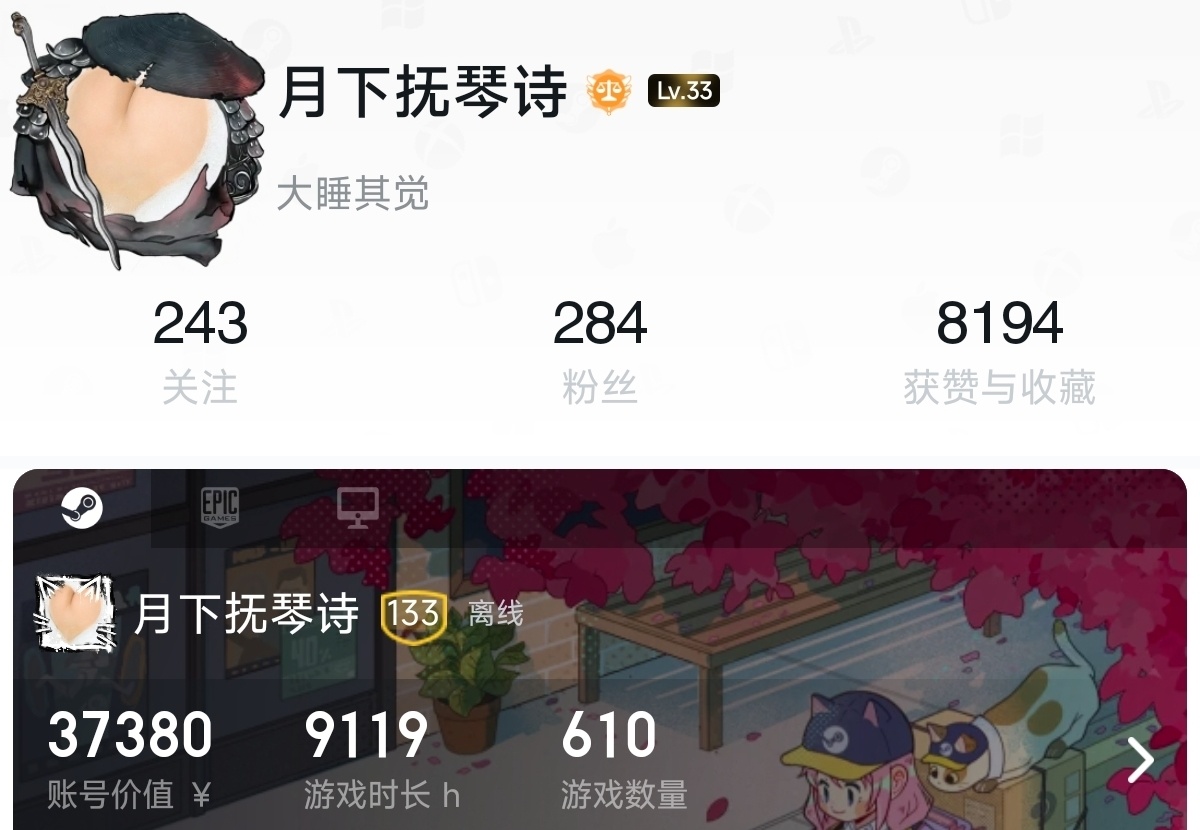 喜欢玩的游戏不用过多叙述了直接大调查我的库就行了另外就是窝很少买了游戏不玩尤其是贵的,因为想想花的米就心疼了