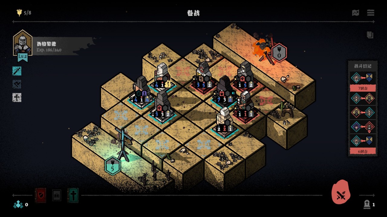 5.當己方傭兵與敵方傭兵在棋盤上處於相鄰位置後就會發生戰鬥(少量遠程攻擊的不需要此位置限制),速度值更大的一方先手攻擊,若兩者速度值一樣就通過ROLL點來決定誰先出手攻擊。