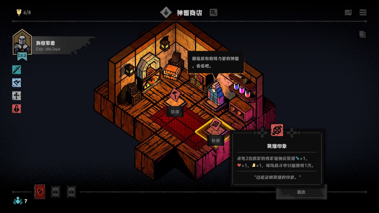 不過很多時候,我們的運氣實際上並不支持我們進入到第二層構築,因爲在冒險中我們不一定能隨機到恰好可以形成相互配合的傭兵技能、傳聞、神器,傭兵之間形成配合的難度是比較大的——當然也有可能是我玩得不夠深入,很多流派套路我沒看出來所以就沒有組出來。不過就我目前通關這個序章的經驗來看,將優質資源花在一個重點傭兵身上,養出一個“帶頭大哥”,往往是比較“輪椅”的策略,簡單粗暴。