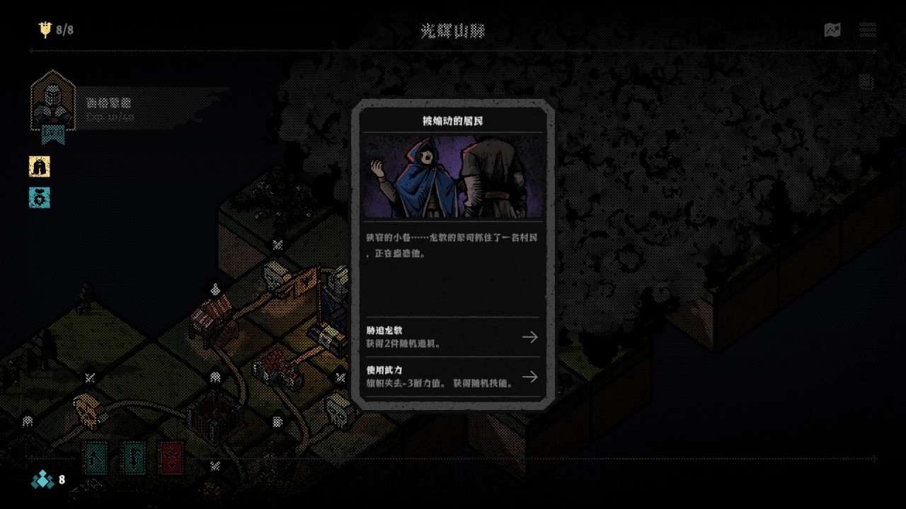 我們在冒險開始前是從三個初始卡組裏選擇一個,初始卡組裏會有三個自帶技能的傭兵,三個初始卡組相當於三個基礎的流派。卡組中其餘的傭兵是白板,但是我們在冒險中會遇到各種類型的隨機事件,其中有幾種就是可以給他們增加新技能的。每個傭兵有兩個技能欄,也就是每個冒險中最多同時擁有兩個技能。
