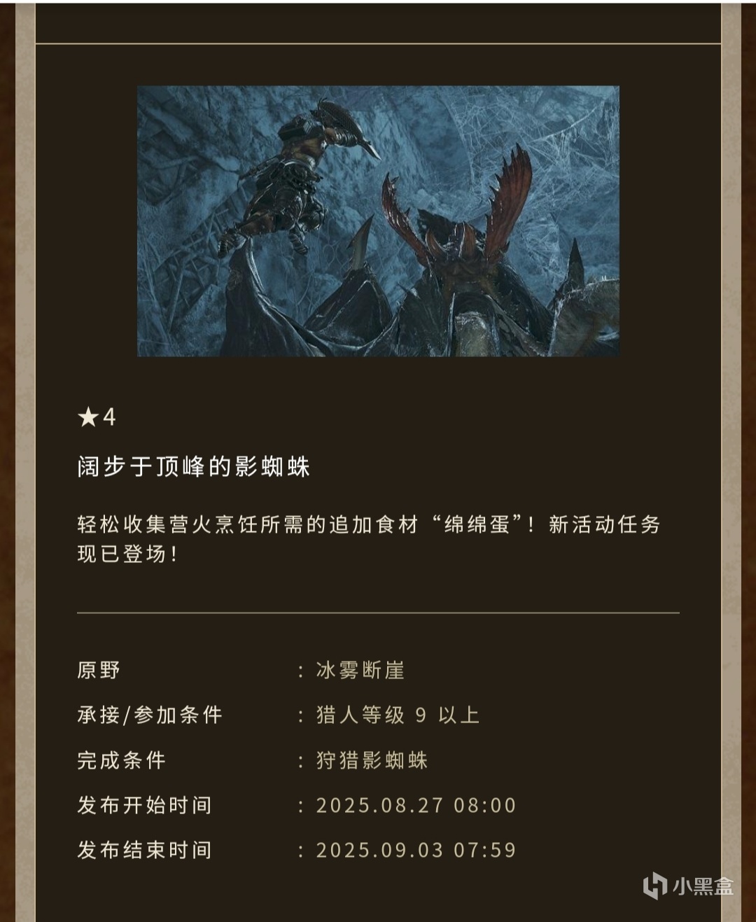 完成条件:狩猎影蜘蛛