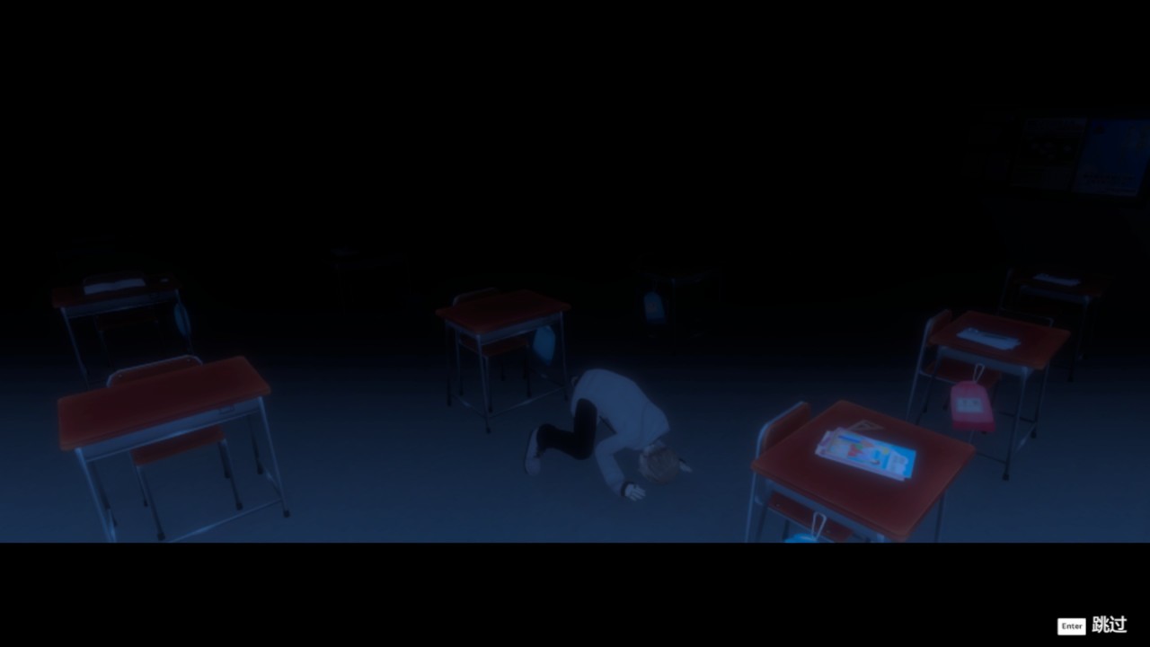 之後的事情我記不太清了,只知道醒來時,已經身處遊戲中的校園裏,VR裏的畫面變成了現實,只是一切都被黑暗籠罩,蒙上了一片詭異的色彩。