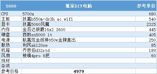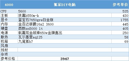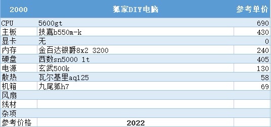 这个预算没有什么好提升的点,我选择提升主板、内存、硬盘