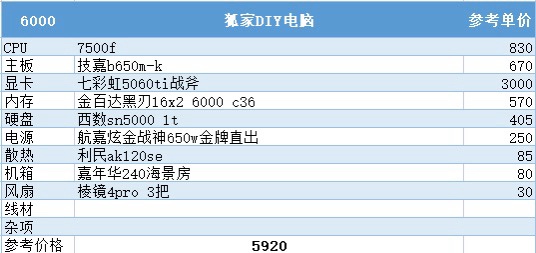 到了这个预算上到一个7500f加5060ti,性价比没有很高,适合做过渡机