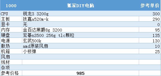 最近突然冒出来一批3200g,估计是硅渣做的,但并不妨碍他成为新的核显u性价比之王这套配置也就打打斗地主办办公看看剧