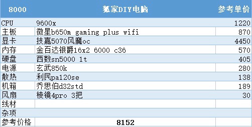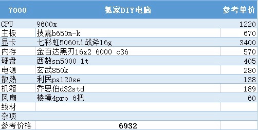 到了7000元预算就可以上到9600x加5060ti16g了,这套也是性价比很高的配置,16g大显存畅玩2k无压力