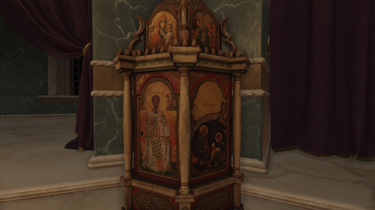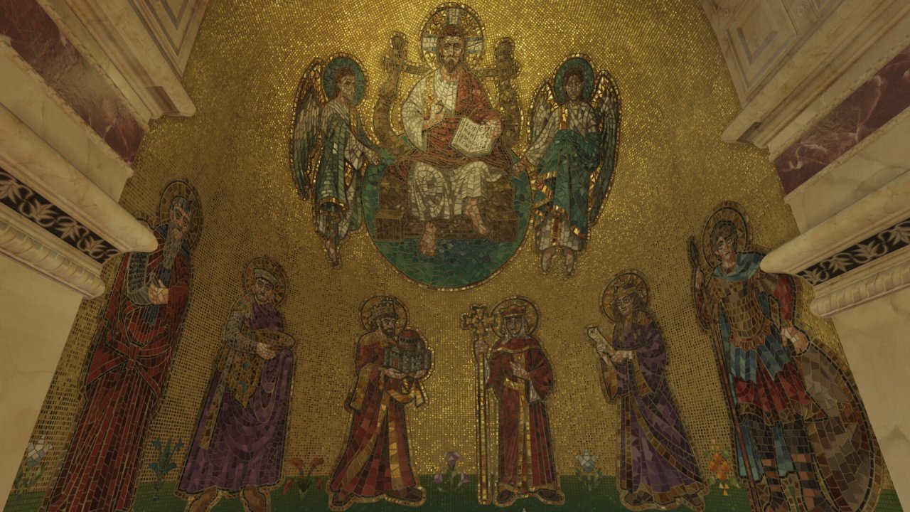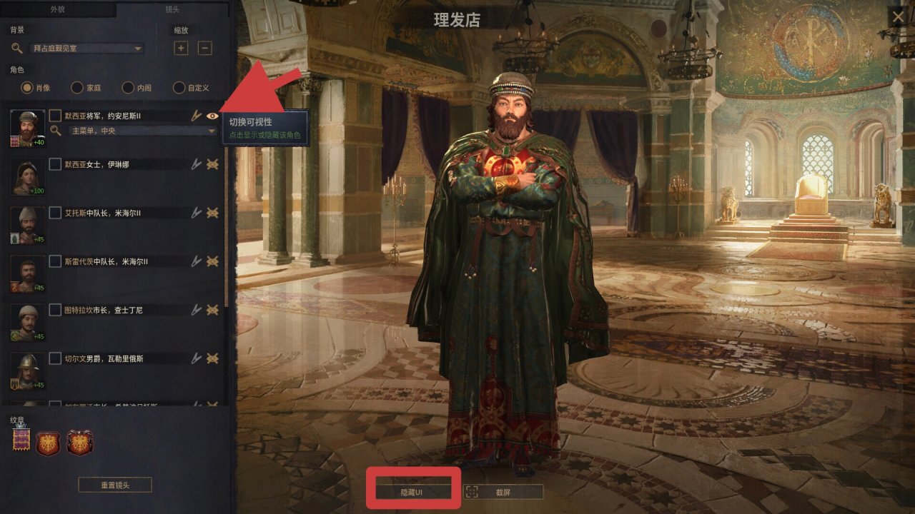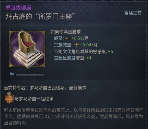 p社给宝物和朝廷都做了精美建模,但实际游玩中只有固定视角,有点可惜。下面我们将利用“Free Camera for Royal Court”这款mod自由探索p社复原的东罗马宫廷。