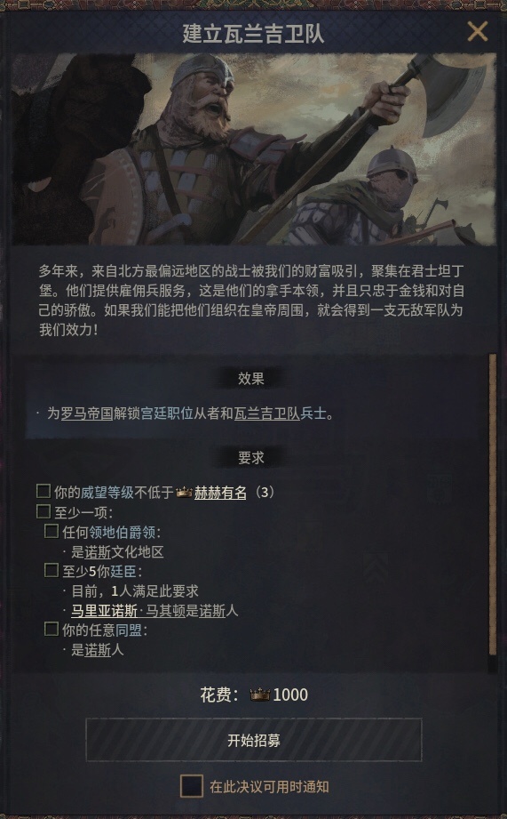 拥有宫廷政治可以获得瓦兰吉卫队