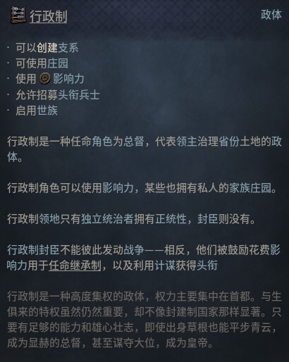 行政制贵族拥有自己的庄园,他们可以通过在庄园修建建筑获得各种各样的加成。